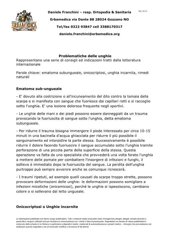 In questa sezione inseriremo delle pagine, con documenzione aggiornata frequentemente, che potrete richiederci direttamente a daniele.franchini@erbamedica.org