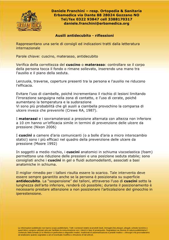 Abbiamo inserito il file con raccomandazioni della letteratura in prodotti ortopedia/ degenza in cuscini e letti/ materassi antidecubito