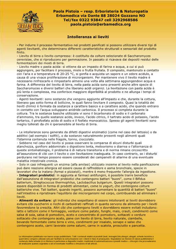 Aggiornamento Intolleranza ai lieviti
